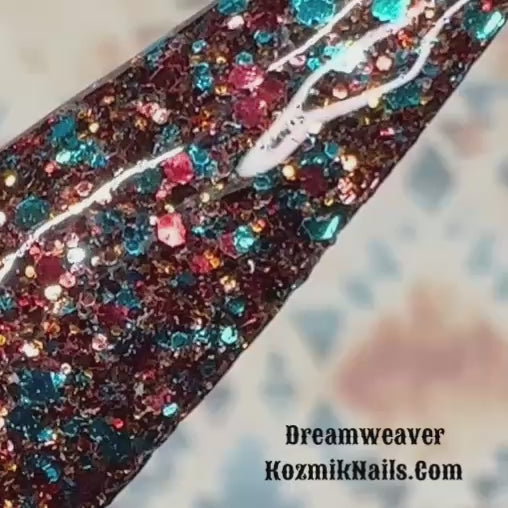 Dreamweaver: A glitter mix of teal, brown, orange and red brown (dr. pepper)