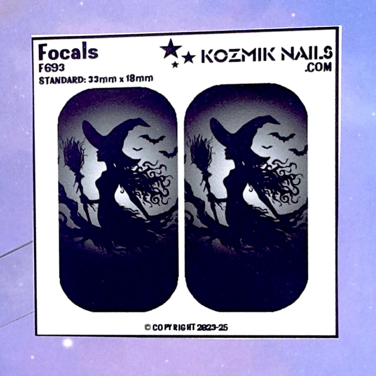 F693 Witch with Broom Silhouetted to make your glow dip powders pop!