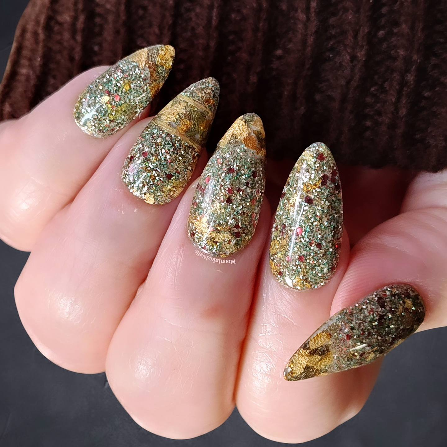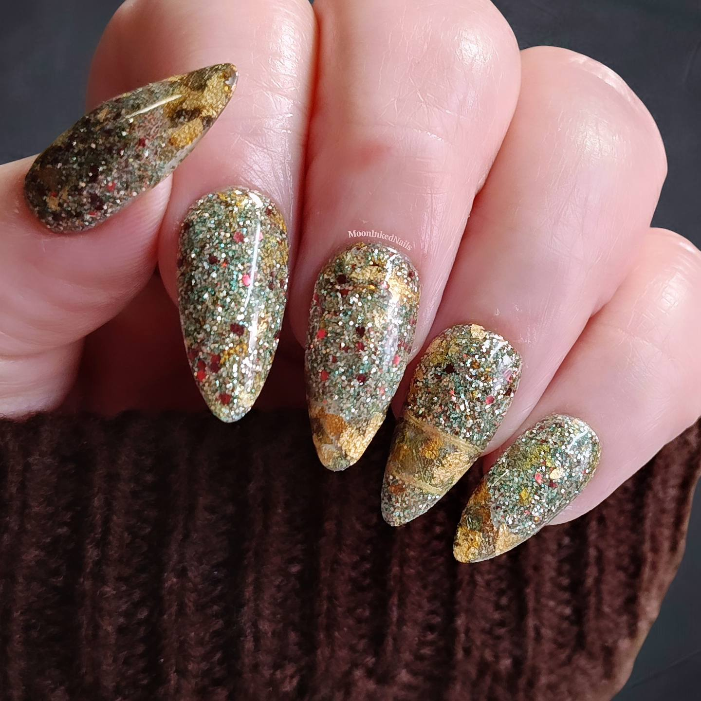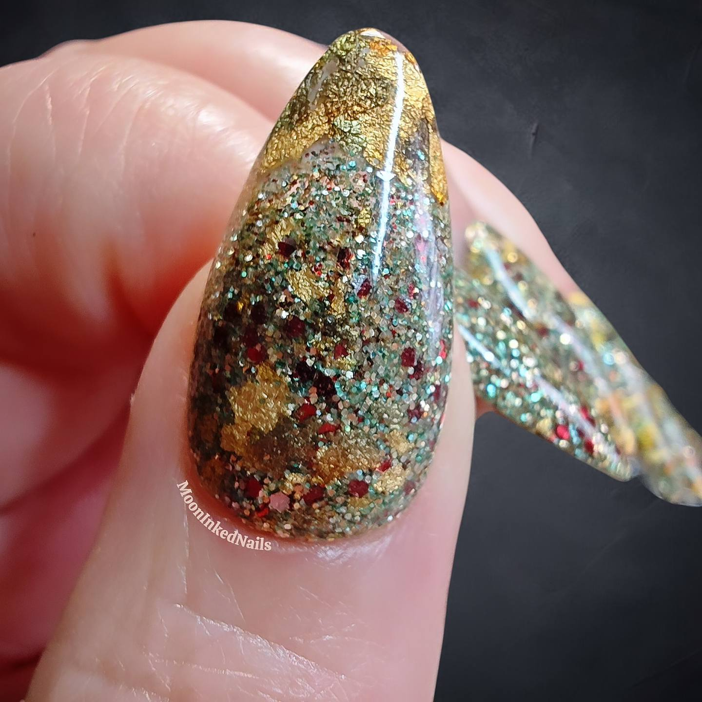 Lady Six Sky: LIght gold with hints of copper and blue foils with soft jade and reddish brown glitters. These colors are pulled from Mayan burial masks and pottery. A powerful warrior Queen of the Maya, Lady Ik Wak Chan Ajaw was also known as Lady Six Sky. She launched and won several military campaigns expanding territory and protecting her people.(Matching colors - Chica Cherry Cola & Free Spirit) Don't forget to fight for you and "your" people.