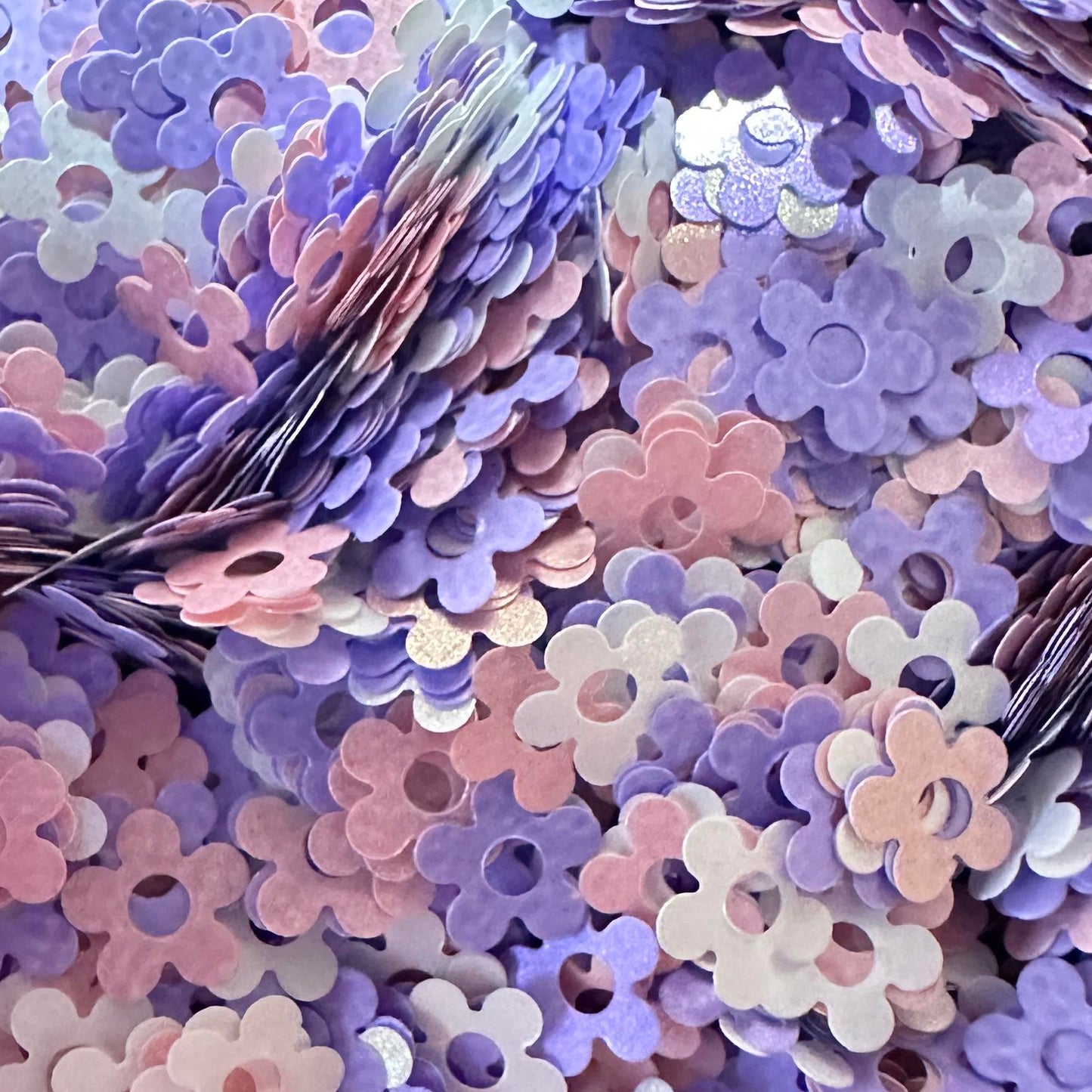 A pinch of pearly flowers in three colors. Could include center dots too! Golden flash backs on the white and pink flowers, with the purple having a purple flash back.